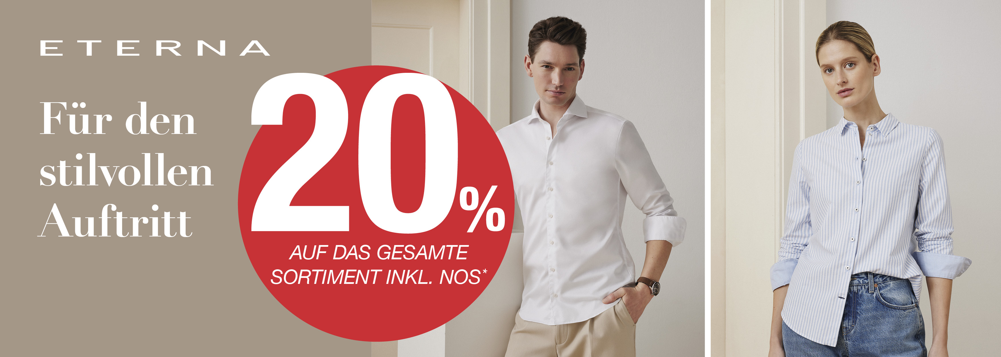 *Gültig auf das gesamte reguläre Eterna-Sortiment. Reduzierte Artikel sind von der Aktion ausgeschlossen. Keine Barauszahlung. Beim Umtausch wird der gezahlte Betrag erstattet. Nicht kombinierbar mit anderen Rabattaktionen/Coupons.